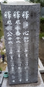 今回は竿石の向かって右面の2・3・4名目へ法名と没年月日、お名前、ご年齢を彫刻しました。