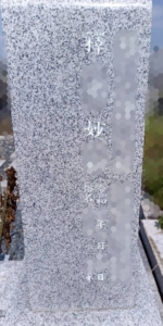 今回は竿石の2名目へ法名と没年月日、俗名、ご年齢を彫刻しました。