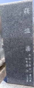 今回は竿石の向かって左面の1名目へ法名と没年月日、俗名、ご年齢を彫刻しました。
