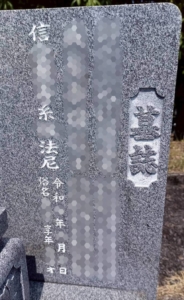 今回は墓誌板の3名目へ戒名と没年月日、俗名、享年を彫刻しました。