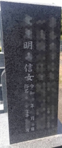今回は本体の竿石の向かって右面の3名目へ戒名と没年月日、俗名、享年を彫刻しました。