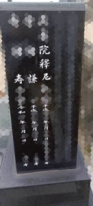 今回は本体の竿石の向かって右面の3・4・5名目に法名と没年月日、お名前、ご年齢を彫刻しました。