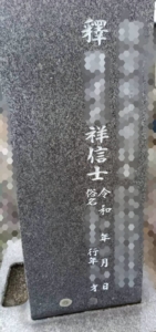 今回は本体の竿石の向かって右面の2名目へ戒名と没年月日、俗名、行年を彫刻しました。