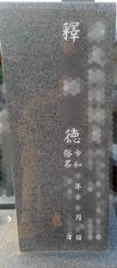 今回は本体の竿石の向かって右面の2名目へ法名と没年月日、俗名、ご年齢を彫刻しました。