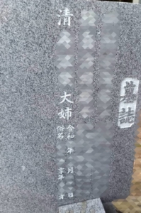 今回は墓誌版の3名目へ戒名と没年月日、俗名、享年を彫刻しました。