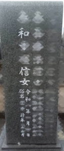 今回は本体の竿石の向かって右面の3名目へ戒名と没年月日、俗名、行年を彫刻しました。