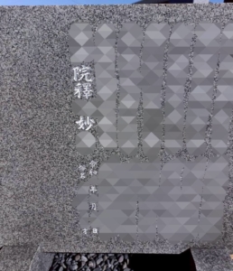 今回は墓誌版の7名目へ法名と没年月日、俗名、没年齢を彫刻しています。